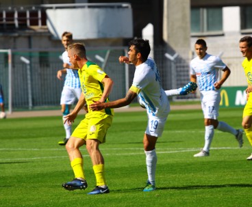 7' | 0-1 | - Второй опасный момент соорудили жёлто-зелёные. После прострела Яблонского с правого фланга чуть-чуть не дотянулся до мяча Хлебосолов, который готов был подставить ногу под летящий низом мяч. Игнатович в падении накрыл мяч.