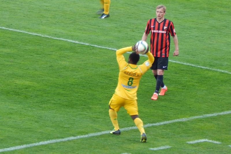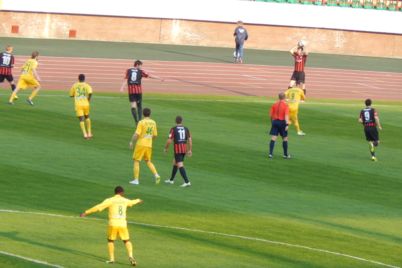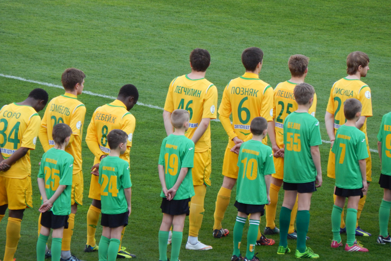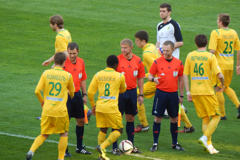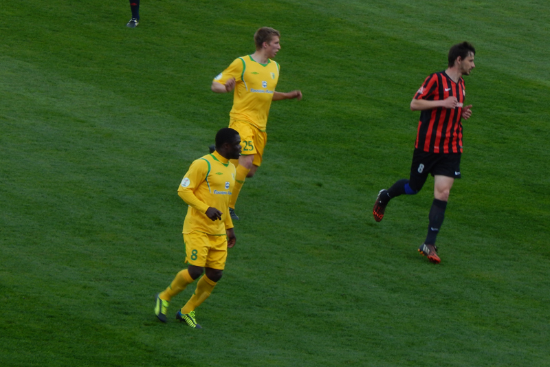 Время шло, а моментов у ворот противника, не возникало. Бомбель активничал, но чего-то путного создать впереди не получалось. Солодовников, чувствуя происходящее, решил не ждать перерыва и начал вносить коррективы еще в первом тайме. Вместо Соро, на поле вышел Горбач и отправился в линию атаки, а на место ивуарийца опустился Денисевич. Тем не менее, до конца тайма в игре ничего не изменилось. Оставалось надеяться на перерыв, на нужные и своевременные слова тренера, на качественные замены и, конечно же, на удачу, которая в этот день отвернулась от жёлто-зелёных напрочь.