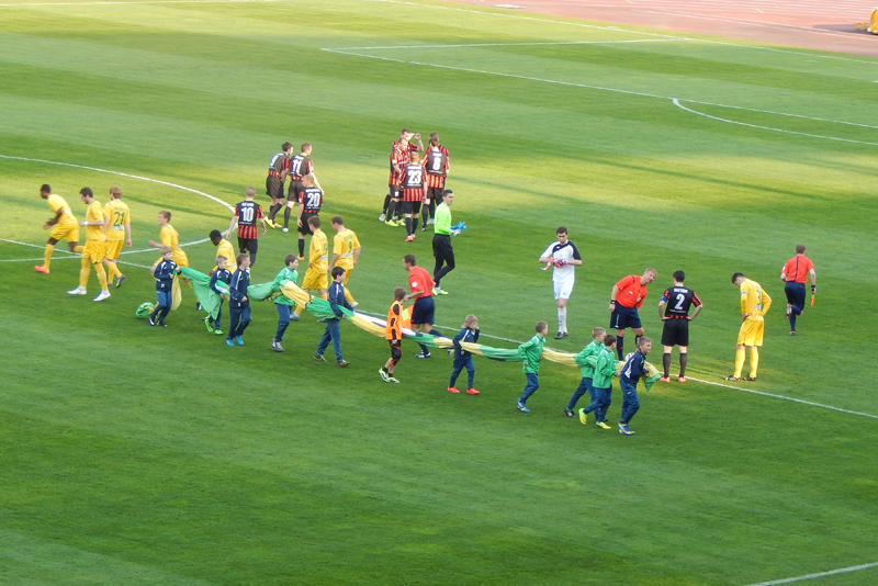 Форма команд: жёлтые майки и трусы — красно-чёрные майки и чёрные трусы.