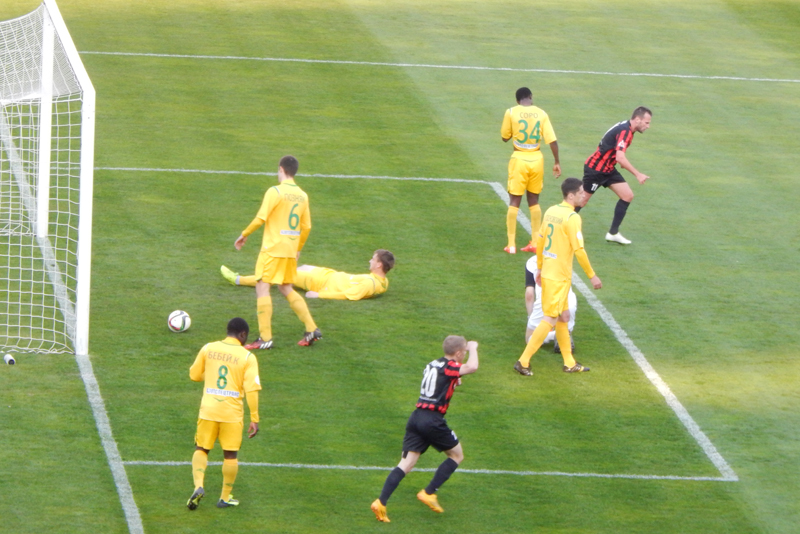 Вторая замена в нашей команде последовала только после того, как на 13 минуте второго тайма все же смог «отличиться» Анюкевич. После подачи Козлова защитник хотел вынести мяч подальше от ворот, а вышло совсем иначе – мяч предательски срезался в собственные ворота. 0:2 – по такой игре это было уже серьёзно… Надо было спасать ситуацию, большими силами идти вперед и забивать голы. Снятие с игры защитника, с последующим усилением линии созидания читалось. Буквально на следующей минуте после второго мяча вместо камерунского защитника Пола Ролана на поле вышел плеймейкер Павел Забелин. Однако через пять минут последний гвоздь вогнал украинец Сергей Рожок. За мгновения до того, как забивал Рожок, было бесспорное нарушение на Позняке, о котором своевременно просигнализировал боковой арбитр, однако Сорока свисток не дал. Команда, почему-то решив, что достаточно взмаха бокового арбитра остановилась сопротивляться, а в это время у Рожка получился точный дальний удар – 0:3. Стало окончательно понятно, что сегодня нам уже ничего не поможет. Болельщик вереницей направился к выходу…