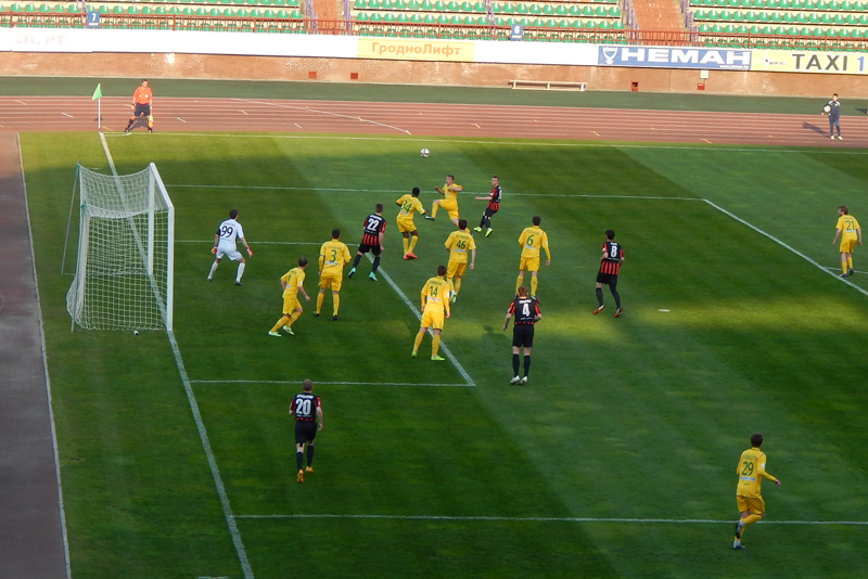 Не сказать, что таким большим было преимущество приезжей команды, что они ставили перед нашей защитой много неразрешимых задач, однако мячи исправно доставлялись по назначению. Первый из них влетел в ворота Василючека после флангового прострела Шрамченко. Изначально показалось, что автогол на свой счет записал Анюкевич, но после просмотра повтора эпизода с первым взятием гродненских ворот, сомнений не осталось – гол забил игрок «Белшины».