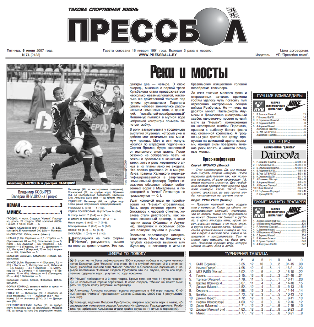 История противостояния «Немана» и «Минска» на одной странице