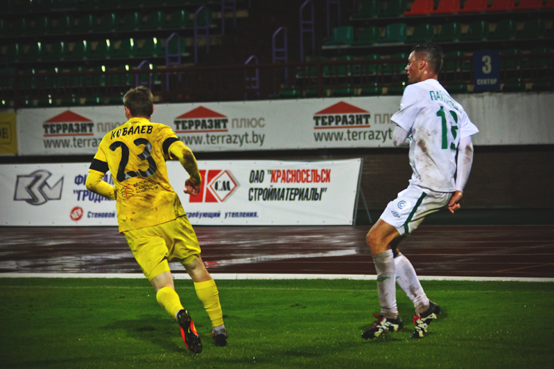 Через семь месяцев команды вновь сошлись в борьбе за кубок, только уже следующего розыгрыша. Обладатель кубка страны сложил свои полномочия уже на стадии 1/8 финала, уступив гродненцам в серии послематчевых одиннадцатиметровых ударов. В основное время команды голов не забили, обменявшись результативными ударами в дополнительное время. Хозяева отыгрались на 109-й минуте – автоголом отметился брат Тимофея Калачёва Дмитрий. А настоящим героем матча стал Александр Сулима, который выручал команду в игровое время, отразил одиннадцатиметровый удар Слесарчука, а потом забил с «точки» сам.