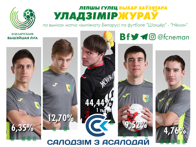 До конца матча «Неман» преимущественно оборонялся. За 20 минут до конца тайма Януш сыграл на опережение и попал в штангу. К отскочившему в поле мячу первым поспел Хвалько и мощным ударом разрядил обстановку, не дав противнику внести мяч в ворота. За четыре минуты до конца встречи Егор во второй раз не дал мячу пересечь линию ворот, после того как нападающий перекинул бросившегося на перехват Журова. Единственный острый выпад удался жёлто-зелёным на 83-й минуте. Савицкий на полном ходу рвался к мячу, и быть бы выходу один на один, но в самый последний момент очень надёжно сыграл Рыбак. Защитник «Шахтёра» в подкате выбил мяч из под ноги гродненца.