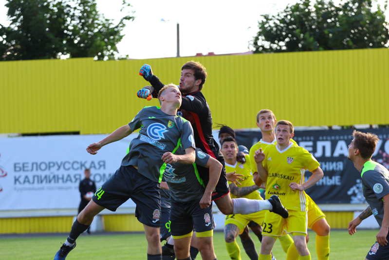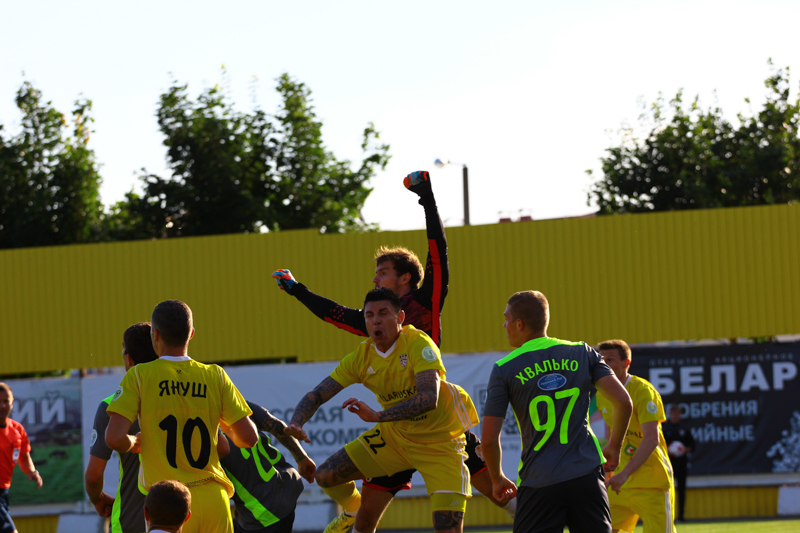 Подгоняемые болельщиками солигорцы принялись штурмовать оборону гостей с первых минут второго тайма. Били с разных дистанций Ковалёв, Лисакович и Януш, который на 58-й минуте упустил самый реальный момент забить мяч. Николай выскочил по центру один на один с Журовым, который выдвинулся на него и ногой отразил посланный в створ ворот мяч. Это было только начало затяжного штурма, который усилился после удаления Зубкова. Следует признать, что оба нарушения тянули на предупреждение. Оставшись вдесятером, думать оставалось только о сохранении ничейного результата, хотя при первой же возможности наши ребята пытались идти вперёд. Время шло, мы гнулись, но не ломались. Все три замены «Шахтёр» сделал на усиление давления на ворота соперника, а вот оставшиеся две наши замены были ответными мерами. Так, на поле появились ещё два дополнительных защитника – Анюкевич и Верховцов.